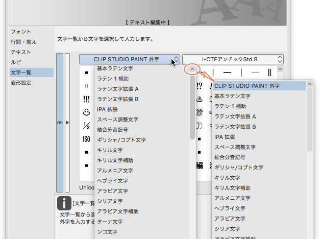 クリスタ フォント 外字 文字一覧が表示されない
