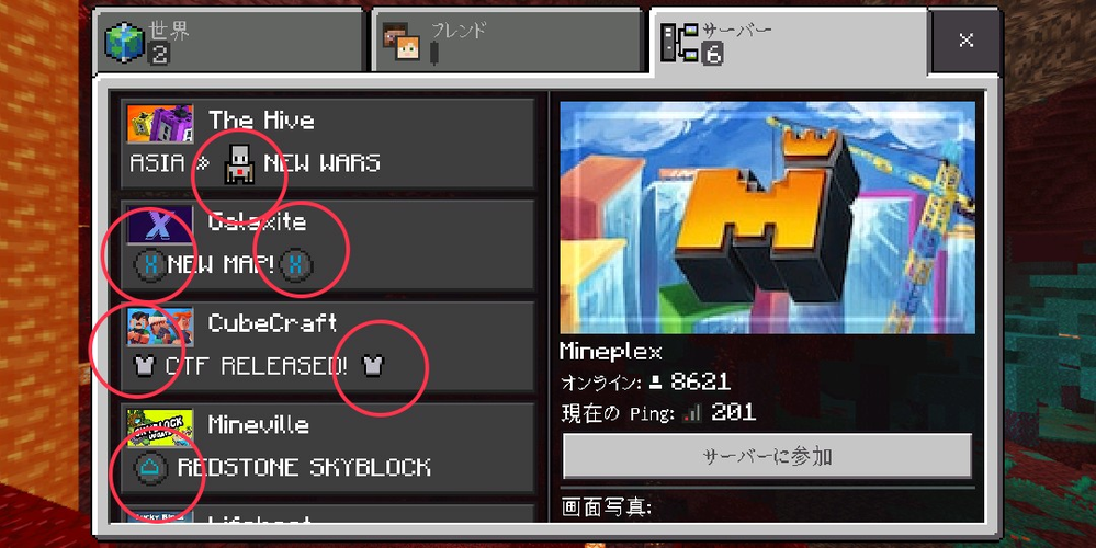 マインクラフトpeのマルチについてです 画像の赤い丸部分はどういう Yahoo 知恵袋