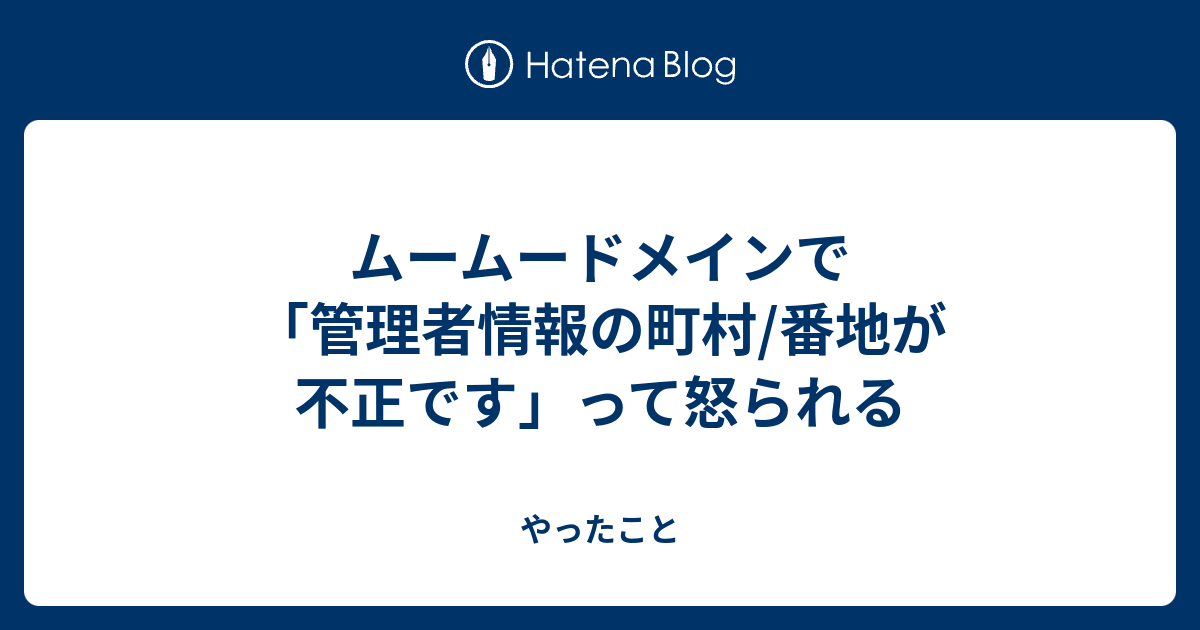 ムームードメインで 管理者情報の町村 番地が不正です って怒られる やったこと