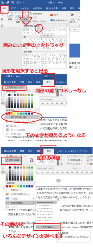 ワード初心者です 項目ごとに四角で囲む方法がわかりません おはようござい Yahoo 知恵袋