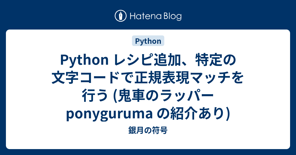 Python レシピ追加 特定の文字コードで正規表現マッチを行う 鬼車のラッパー Ponyguruma の紹介あり 銀月の符号