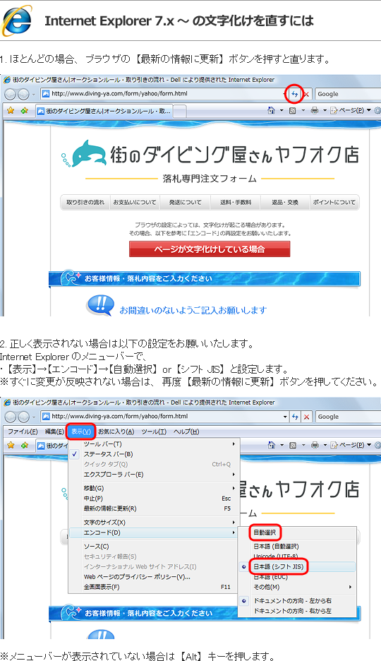 街のダイビング屋さん フォームの表示に関するヘルプ Internet Explorer 7 X